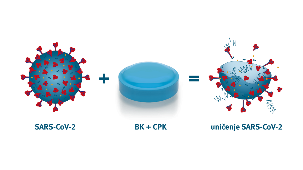 Cetilpiridinijev klorid je učinkovit proti virusom z ovojnico, bakterijam in glivicam. Ciljno deluje na ovojnico virusa, zaradi česar ta izgubi infektivnost (nalezljivost). To so potrdili tudi za virus, ki povzroča gripo. (5) V zadnjih dveh letih so opravili nekaj študij o vplivu CPK ali podobnih učinkovin na SARS-CoV-2. Študija o pastilah, ki vsebujejo BK in CPK, je prva preverila delovanje te edinstvene kombinacije proti SARS-CoV-2. Rezultati kažejo, da je bilo več kot 99,99 % SARS-CoV-2 uničenega že v prvih minutah delovanja.